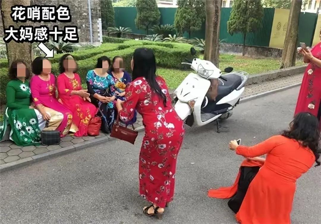 但是有一部分中年女性,出门旅游的时候就会喜欢穿下面这种印花的连衣裙,会选择绿色甚至是大紫色大红色的衣服色调,这样的衣服最常见的就是旅游景区,很多已经退休的中年女人,就很喜欢选择像下面这种花哨配色的裙装,穿在身上,大妈感十足。