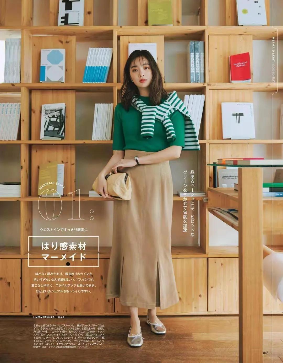 像绿色这种衣服单品确实不好配色,如果配色错了,那么很容易显得廉价,像下面这种针织绿色短袖上衣,穿在身上能变得很高级,有两个原因,色彩纯正,衣服材质过关不容易起毛起球,自然穿在身上很高级,其次就是搭配上经典款的卡其色半身裙,因为卡其色的裙子非常的百搭和绿色组合在一块,确实和别的颜色一点不逊色。